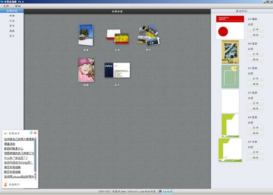左侧为“印品导航区”,中间为“制作区”,右侧为“最近印品”